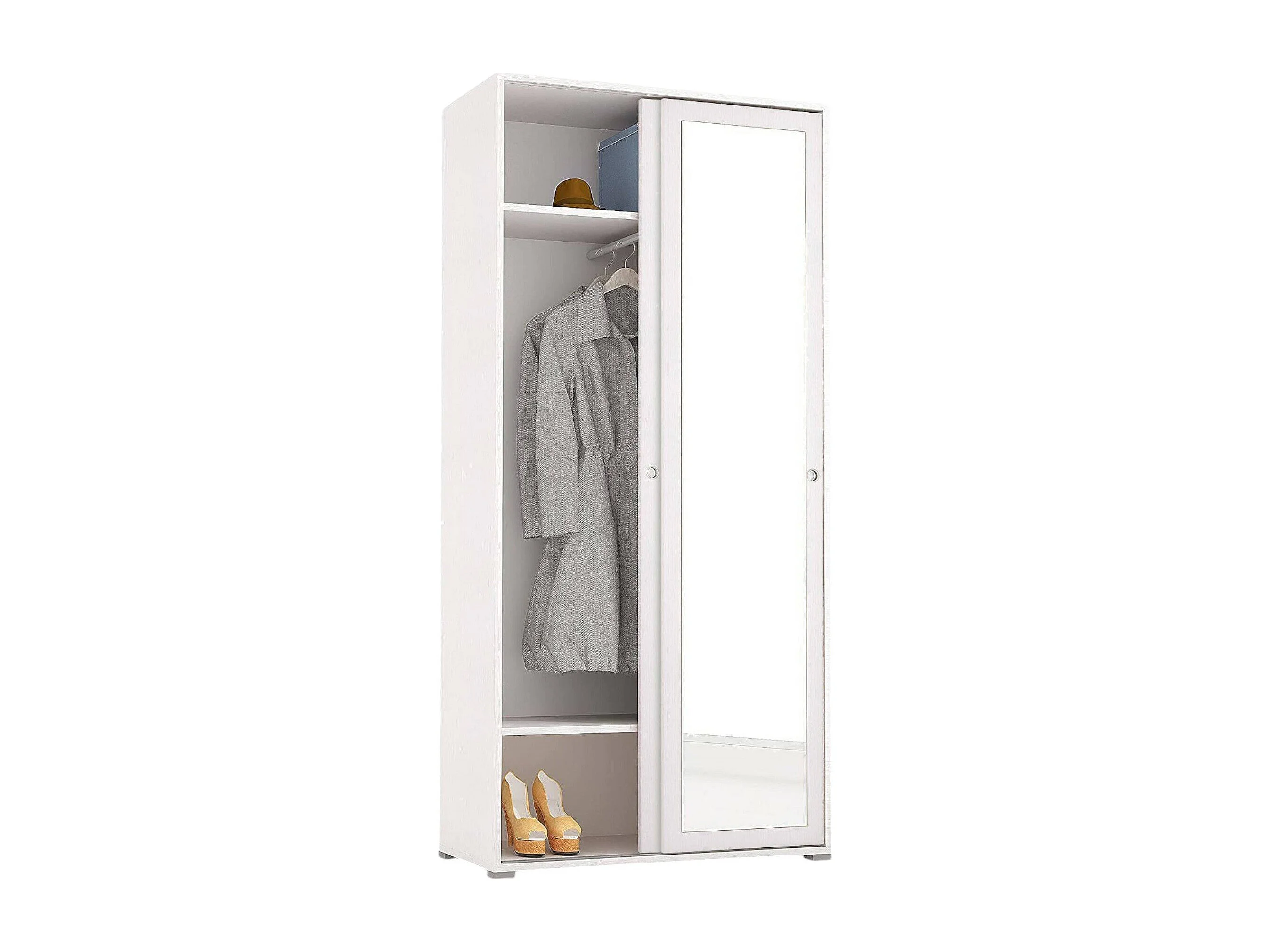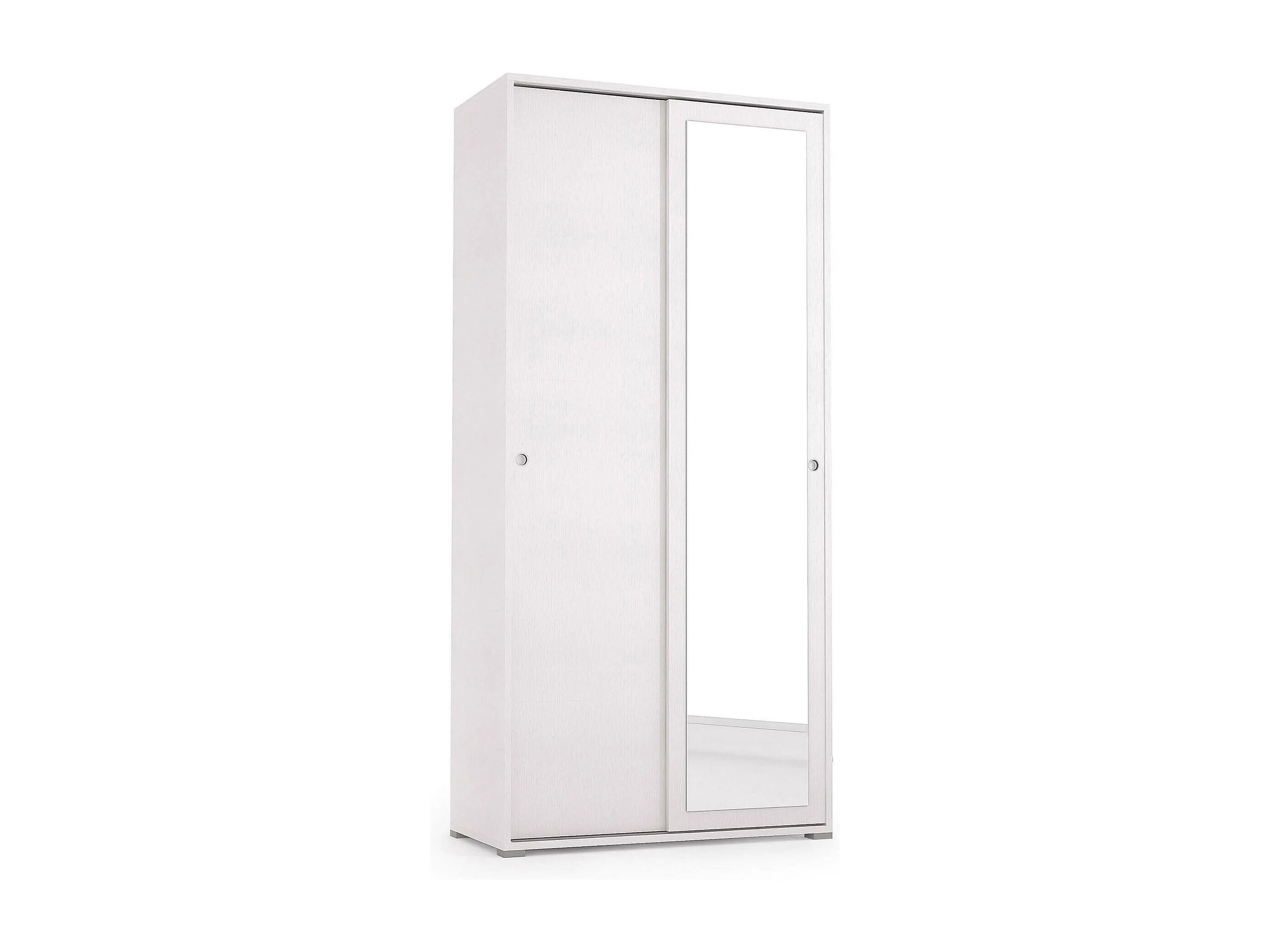 Armário Tulipano, Armário com 2 portas de correr e espelho, Armário com varão e prateleiras, 100% Fabricado em Itália, 90x45h195 cm, Branco
