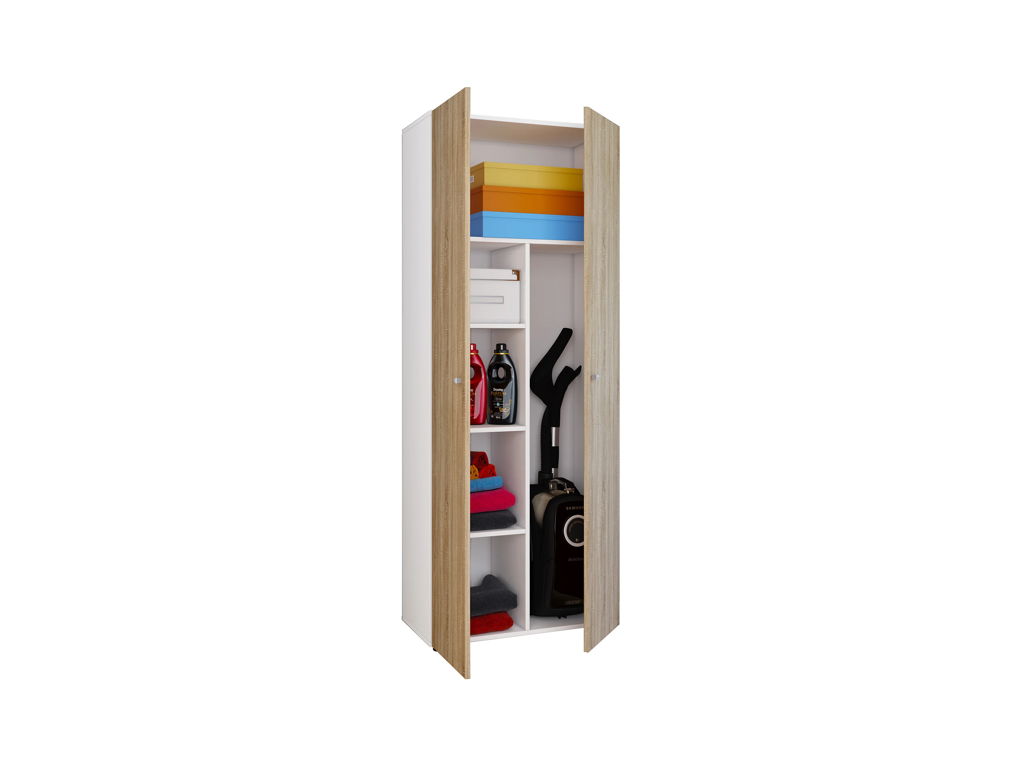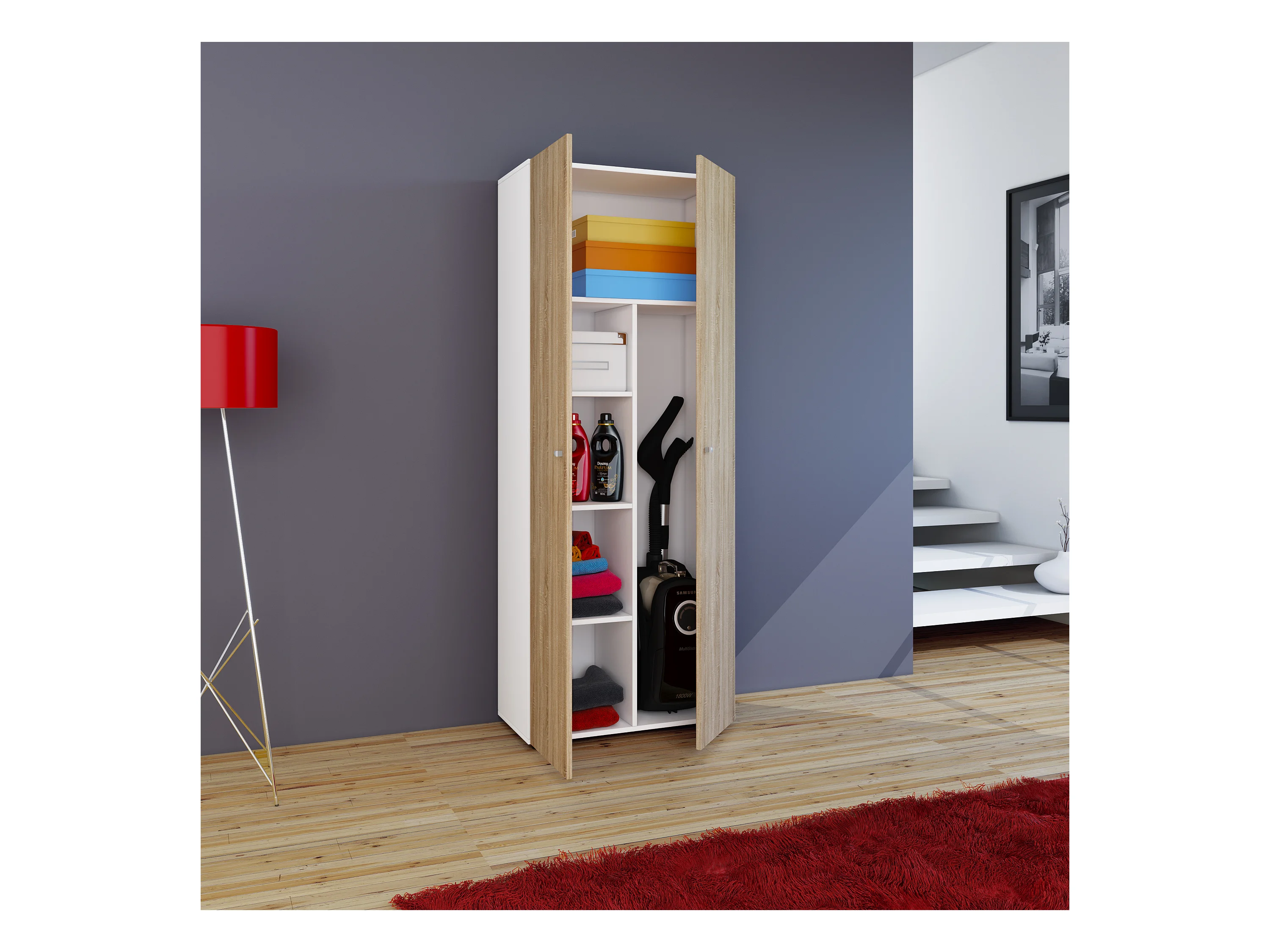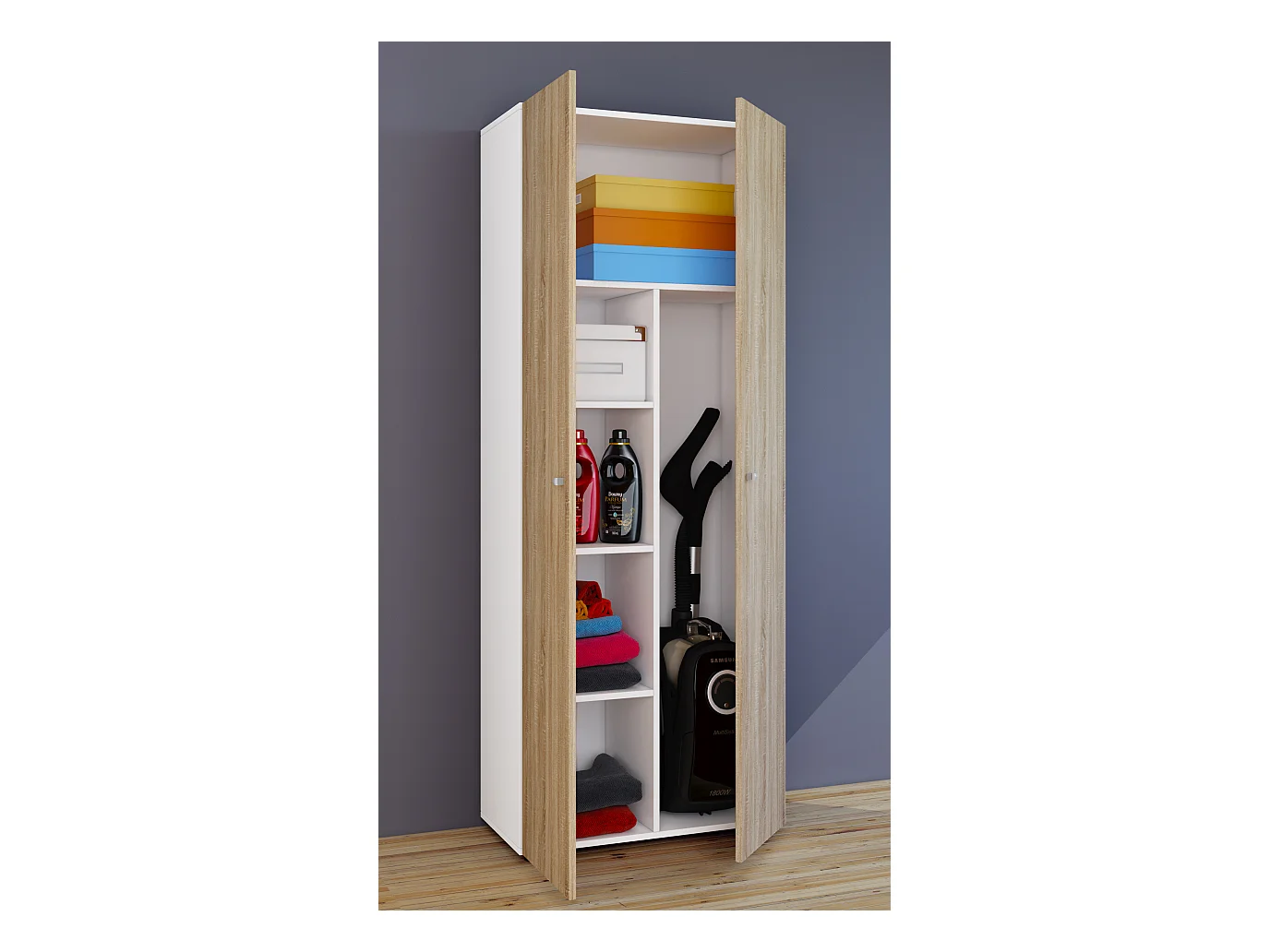 Armário vassoura VCM | 6 compartimentos | Dimensões L. 70 x A. 238 x P. 40 cm | Armário doméstico | Armário multiuso | Montagem com duas portas - Vandol (Beech)