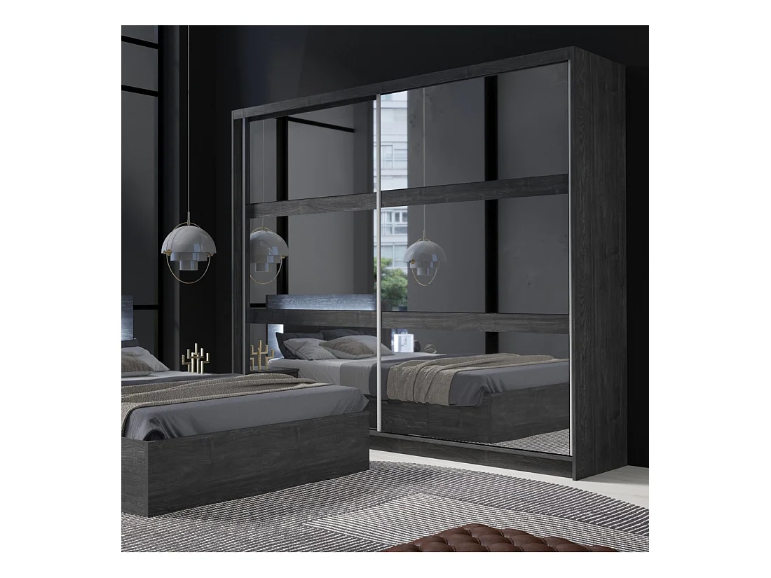 Armoire 2 portes coulissantes avec miroir 200 cm - noir et chêne - Collection STRANO