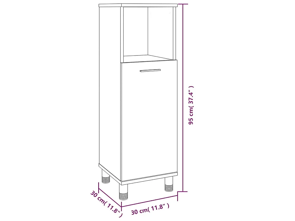 Armário WC 30x30x95 cm derivados de madeira carvalho castanho