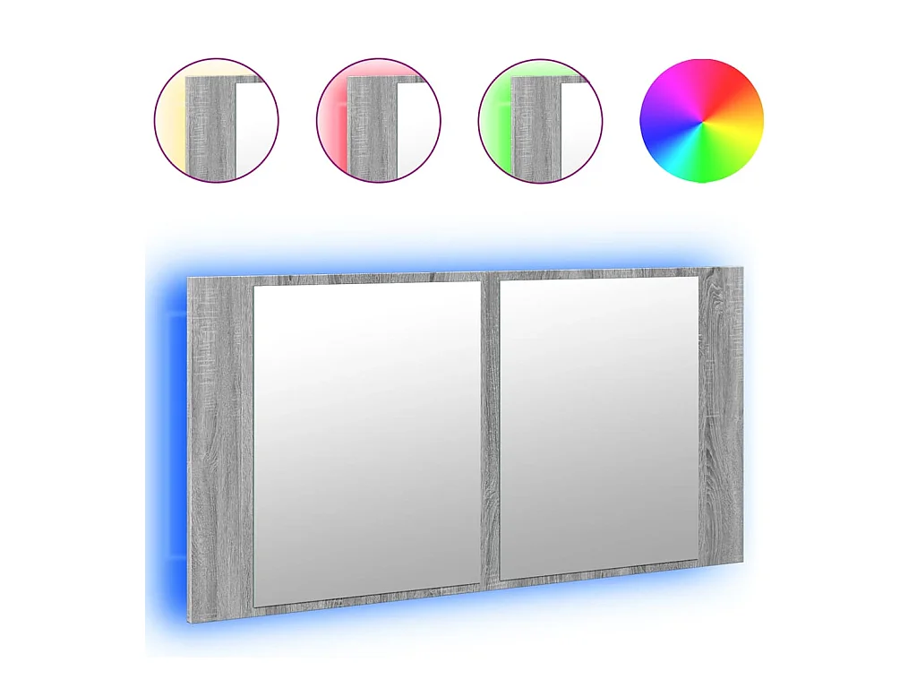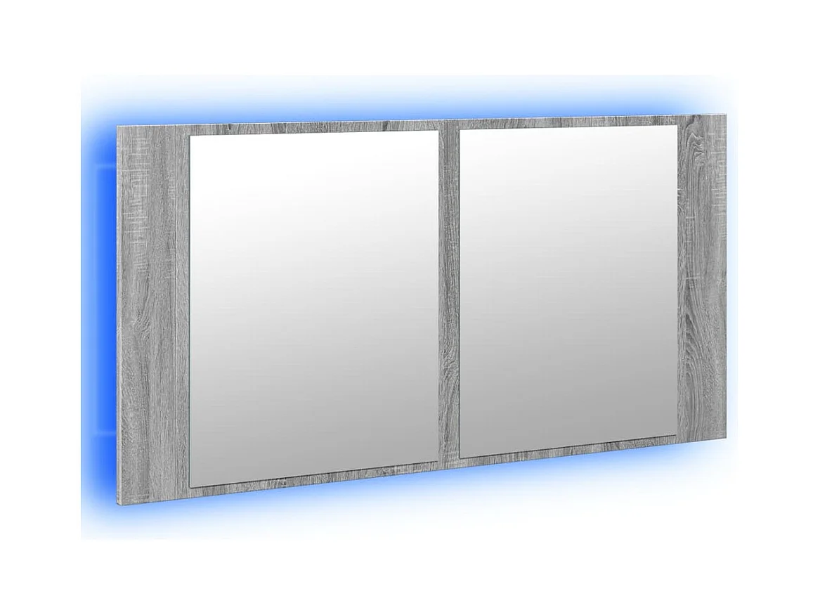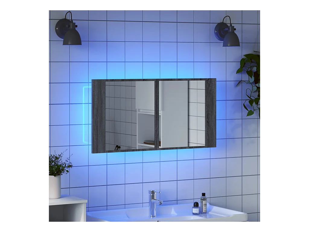 Armário WC c/ espelho e luzes LED acrílico cinzento sonoma