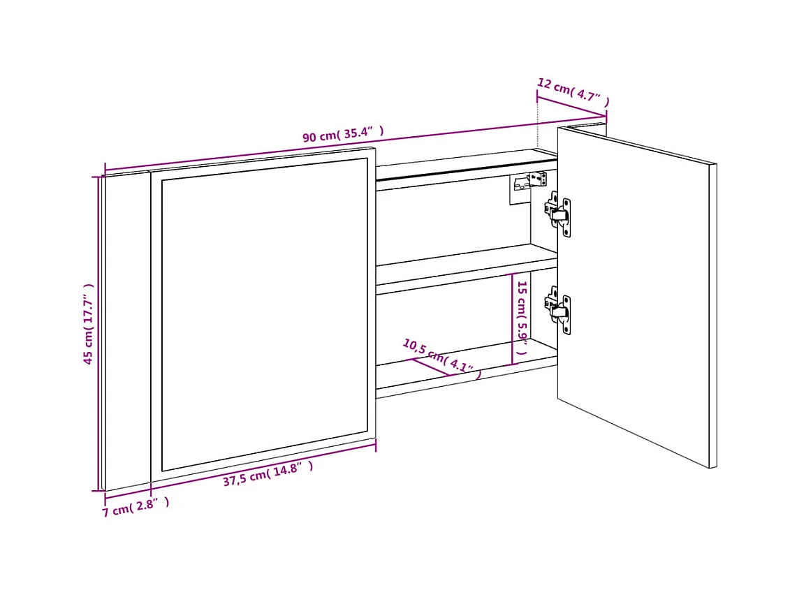 Armário espelhado com LED 90x31,5x62 cm cinzento cimento