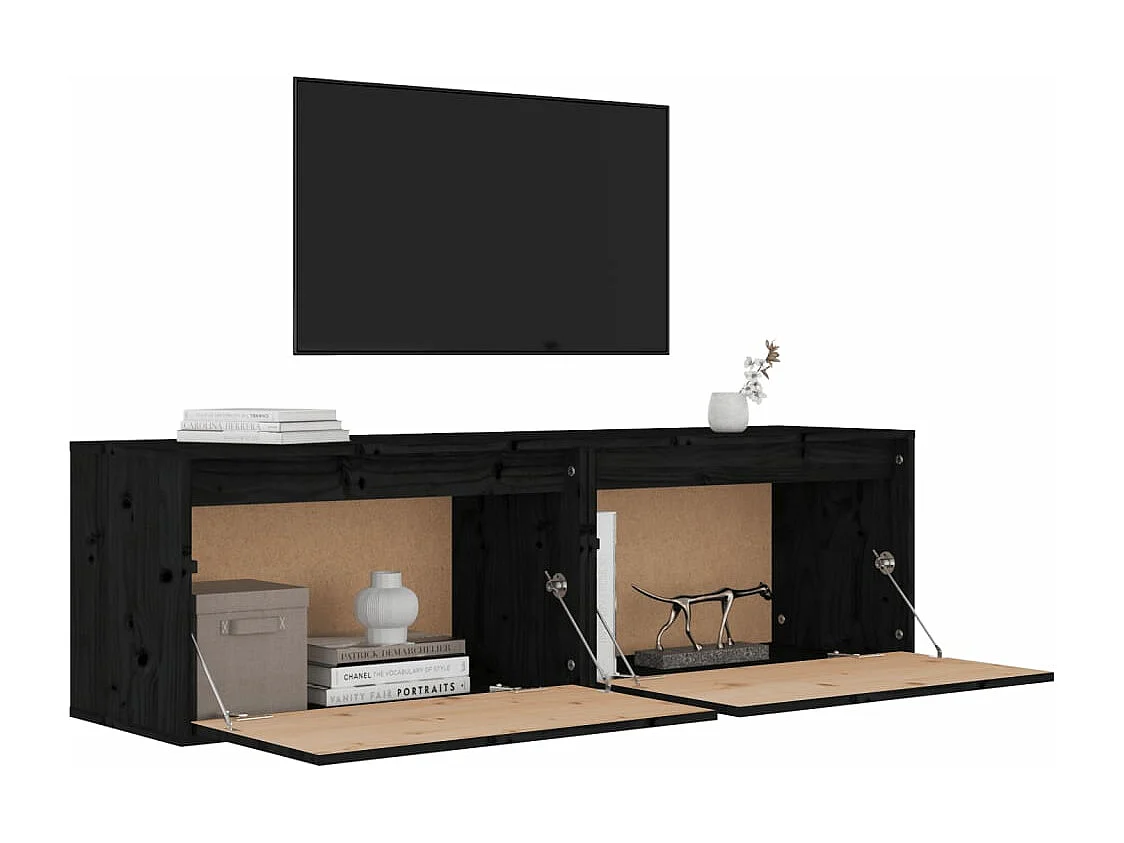 Armários de parede 2 pcs 60x30x35 cm pinho maciço preto