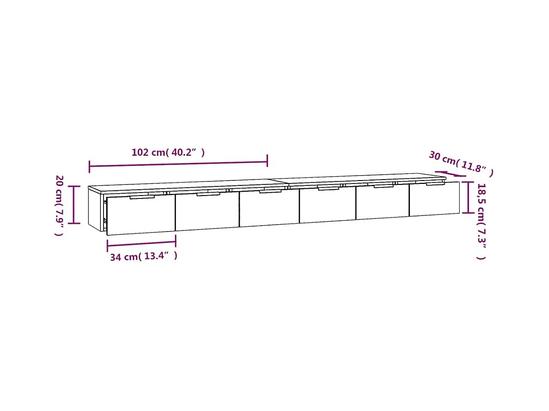 Armários de parede 2pcs 102x30x20cm derivados de madeira fumado