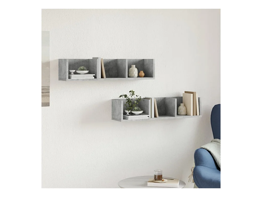 Prateleiras de parede 3 pcs derivados de madeira cinza cimento
