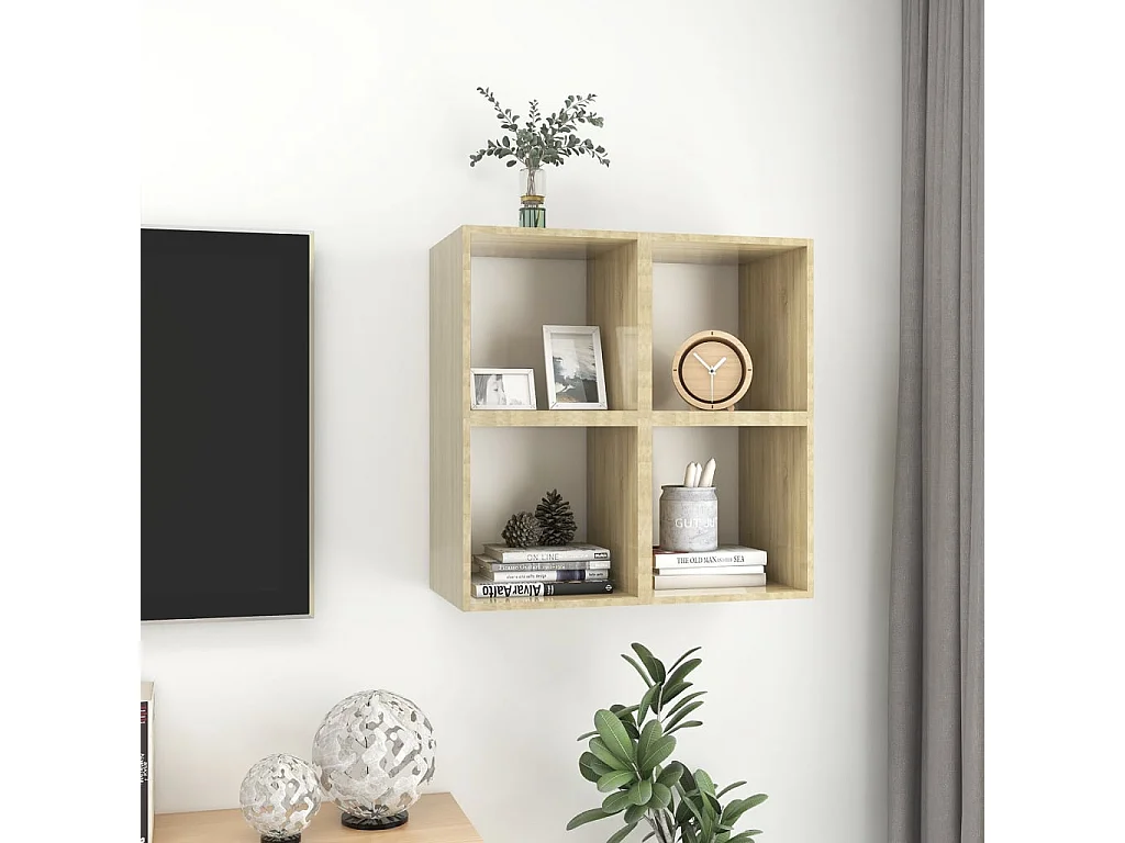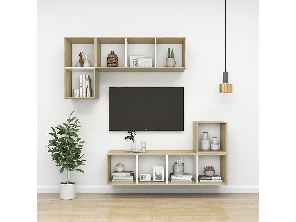 Armários parede 4pcs derivados madeira branco e carvalho sonoma