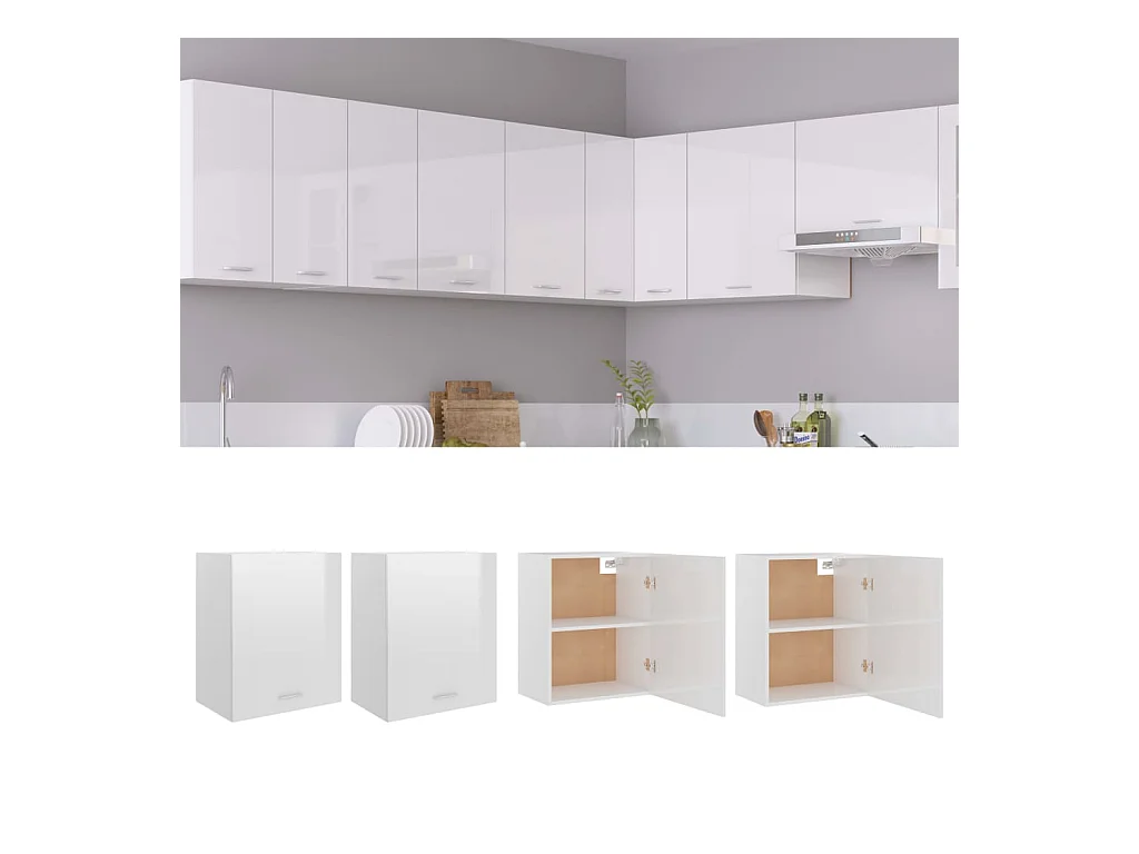 Armários suspensos 2 unidades branco brilhante Madeira artificial