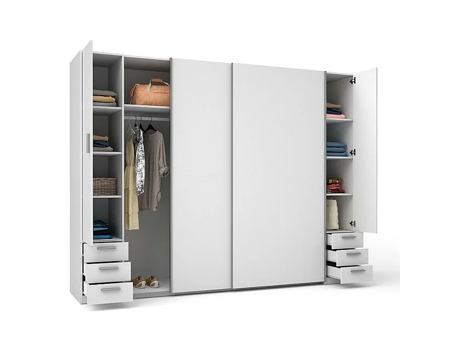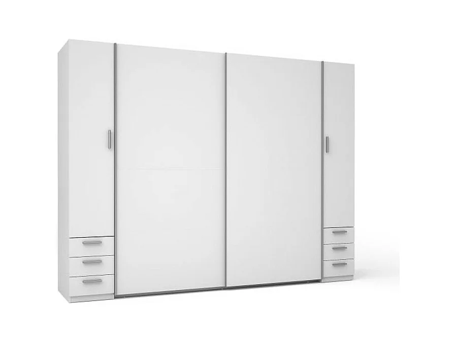 Armoire 4 portes avec miroir et 6 tiroirs – STAR – Blanc – L264 cm