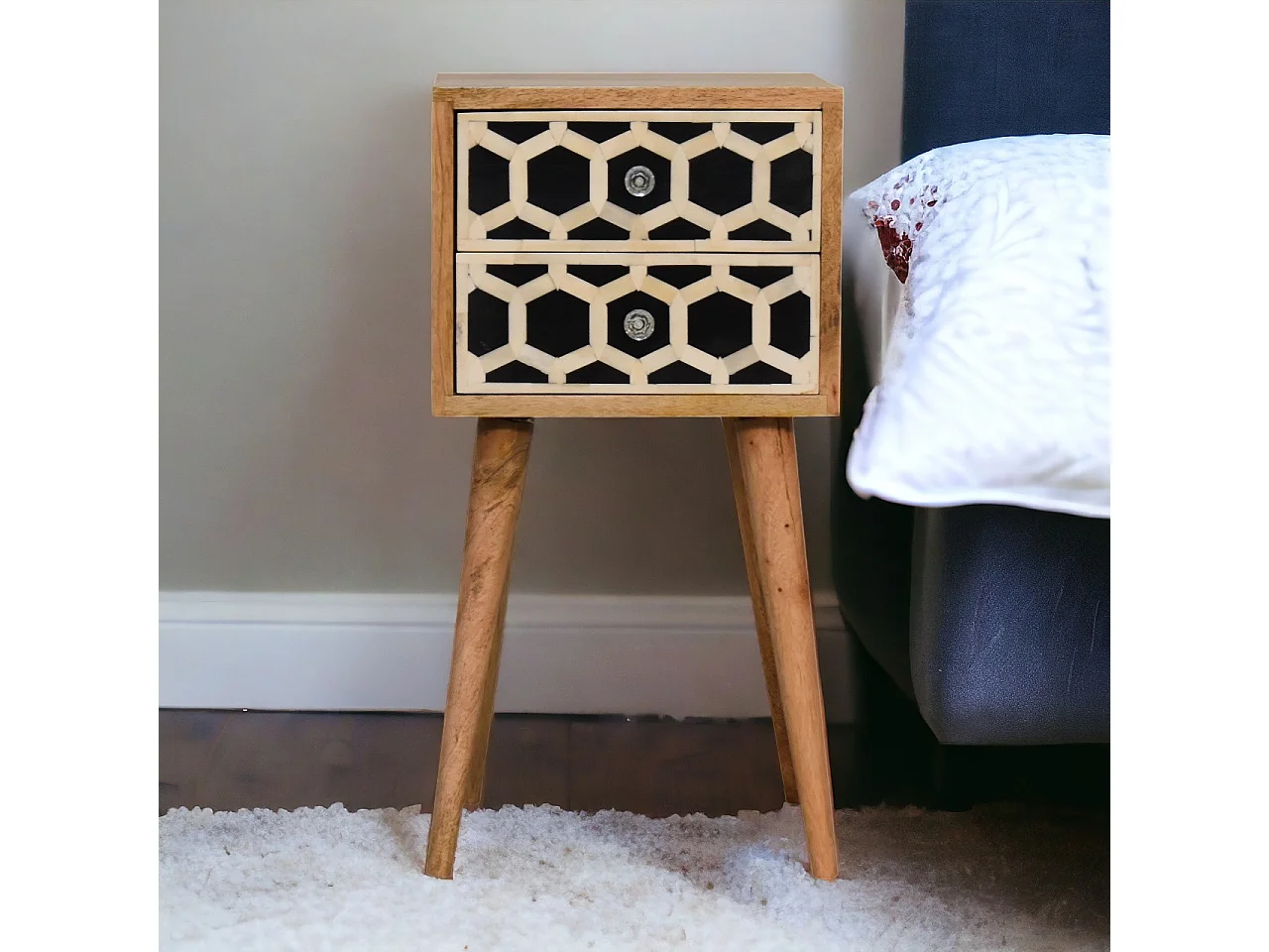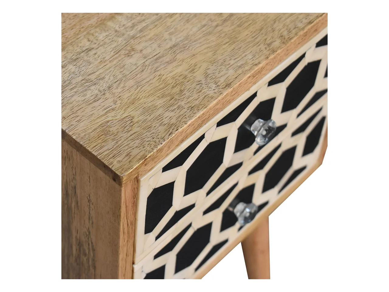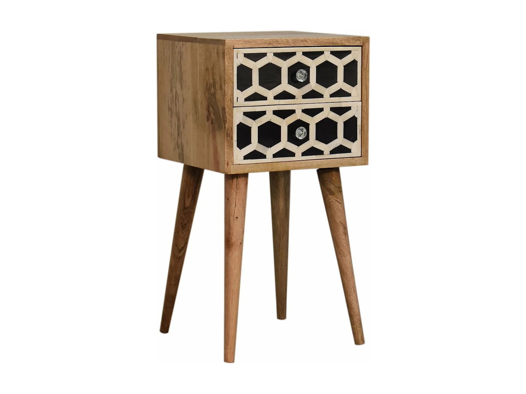 Artisan Furniture Mini Criado-Mudo com Marchetaria de Osso e 2 Gavetas, Quarto