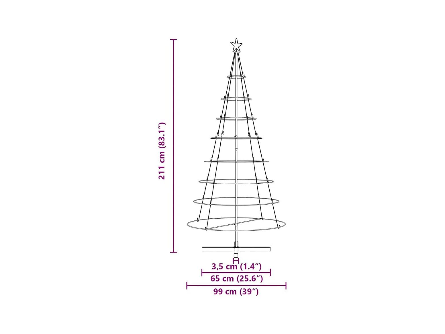 Árvore de Cone de Natal com suporte Preto 210 cm Aço