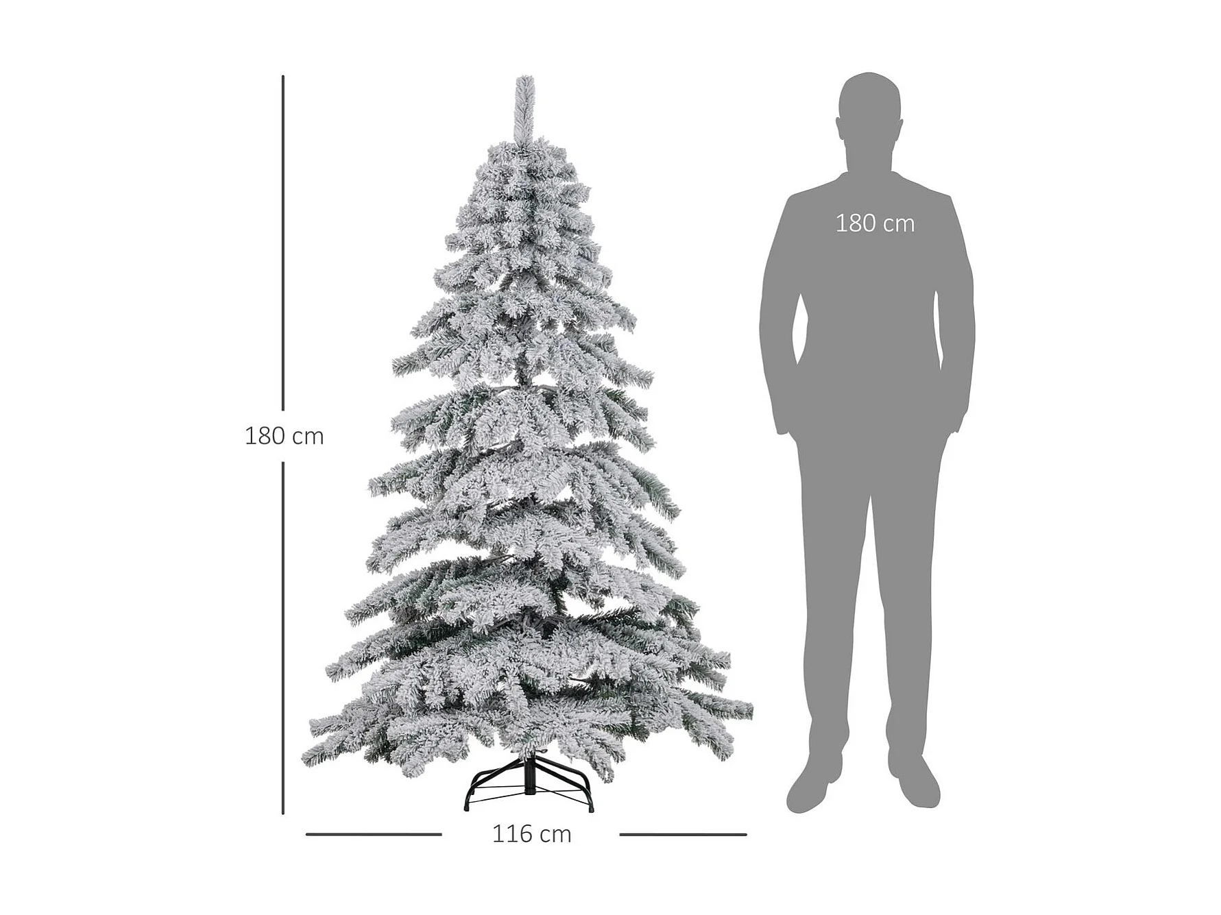 Árvore de Natal 180 cm com Neve Artificial e 627 Pontas de PVC - Decoração Elegante para Interiores Verde e Branco