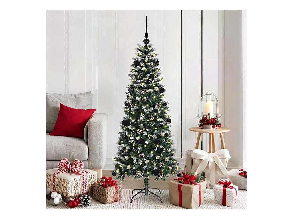Árvore de Natal Slim com 150 LEDs Verde e Branco 150 cm
