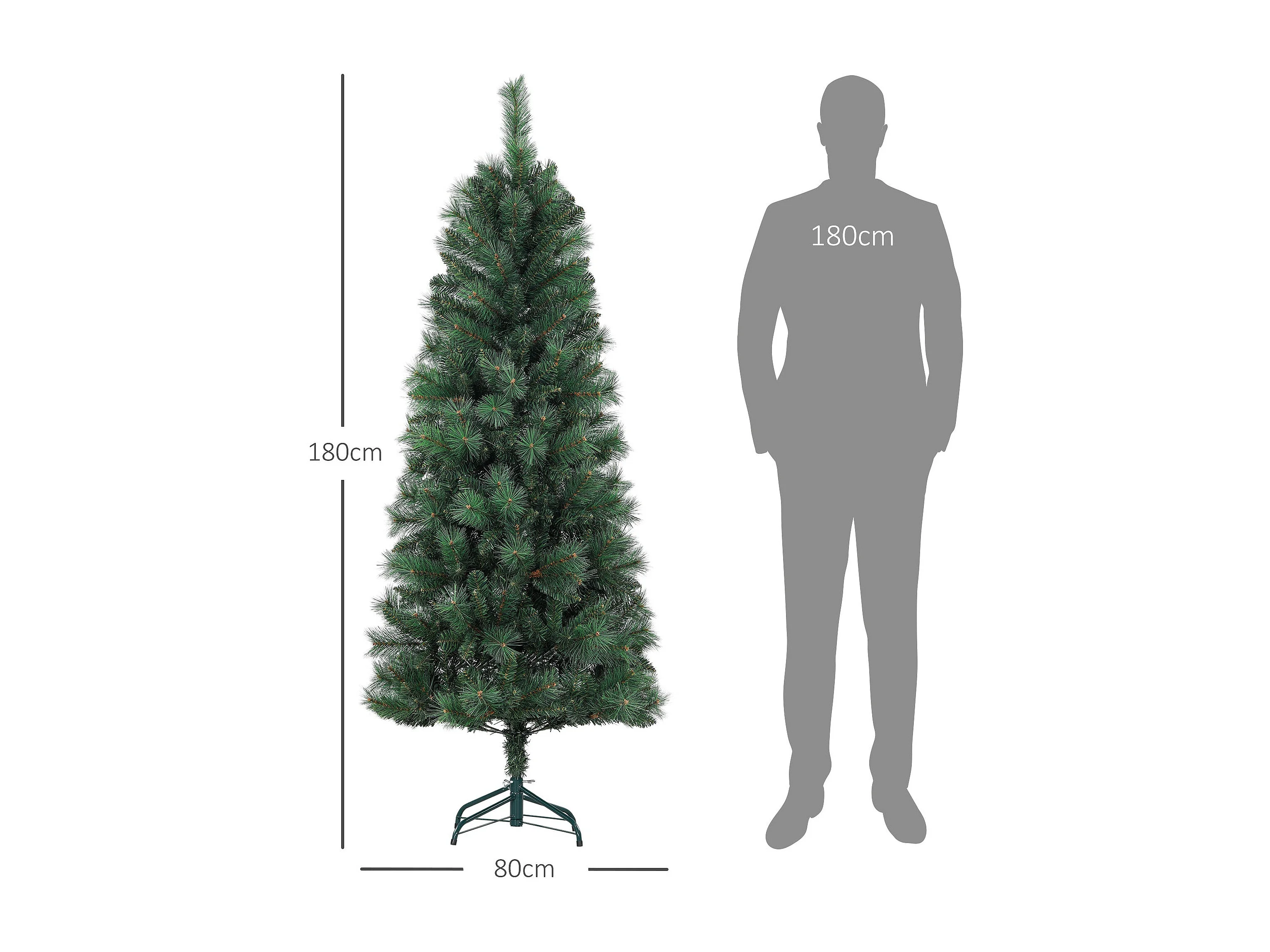 Árvore de Natal Estreita Tipo Lápis de 180 cm com Base Dobrável e 479 Ramos - Ideal para Escritórios e Pequenos Espaços