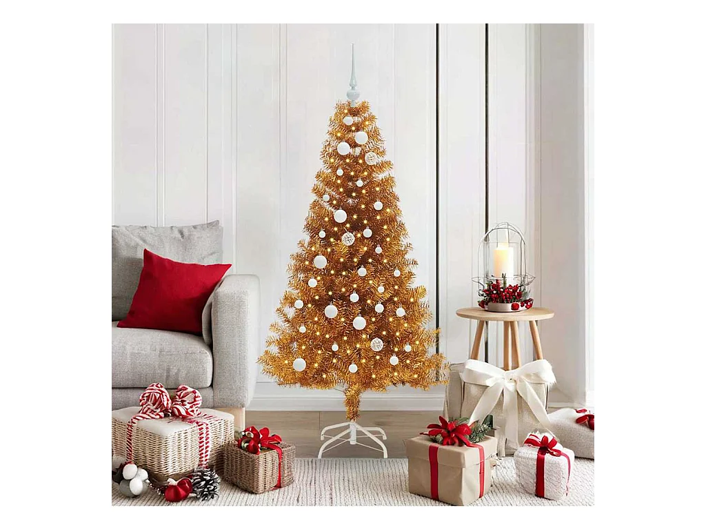 Árvore de Natal com 150 LEDs com suporte Ouro 150 cm PET