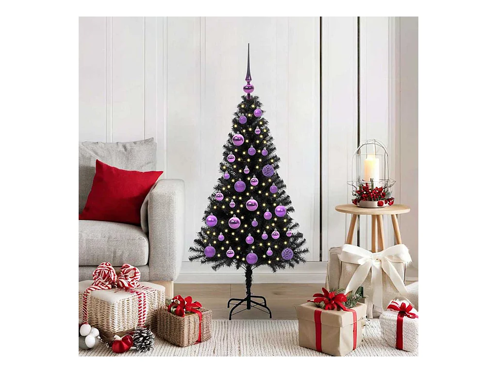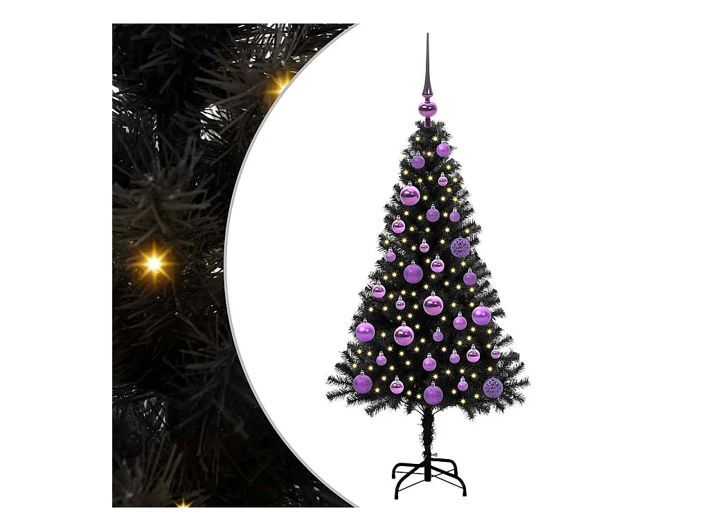 Árvore de Natal com 150 LEDs com suporte Preto 120 cm PVC