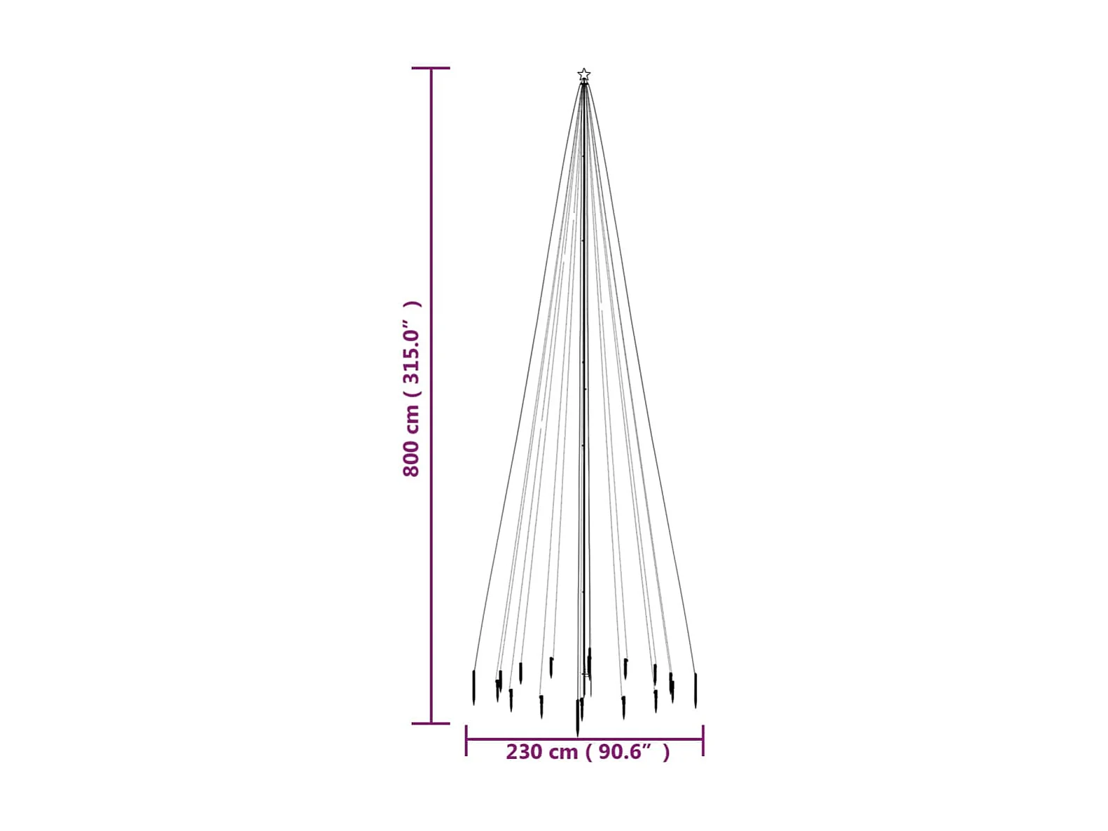 Árvore de Natal com estaca 1134 LEDs coloridos 800 cm