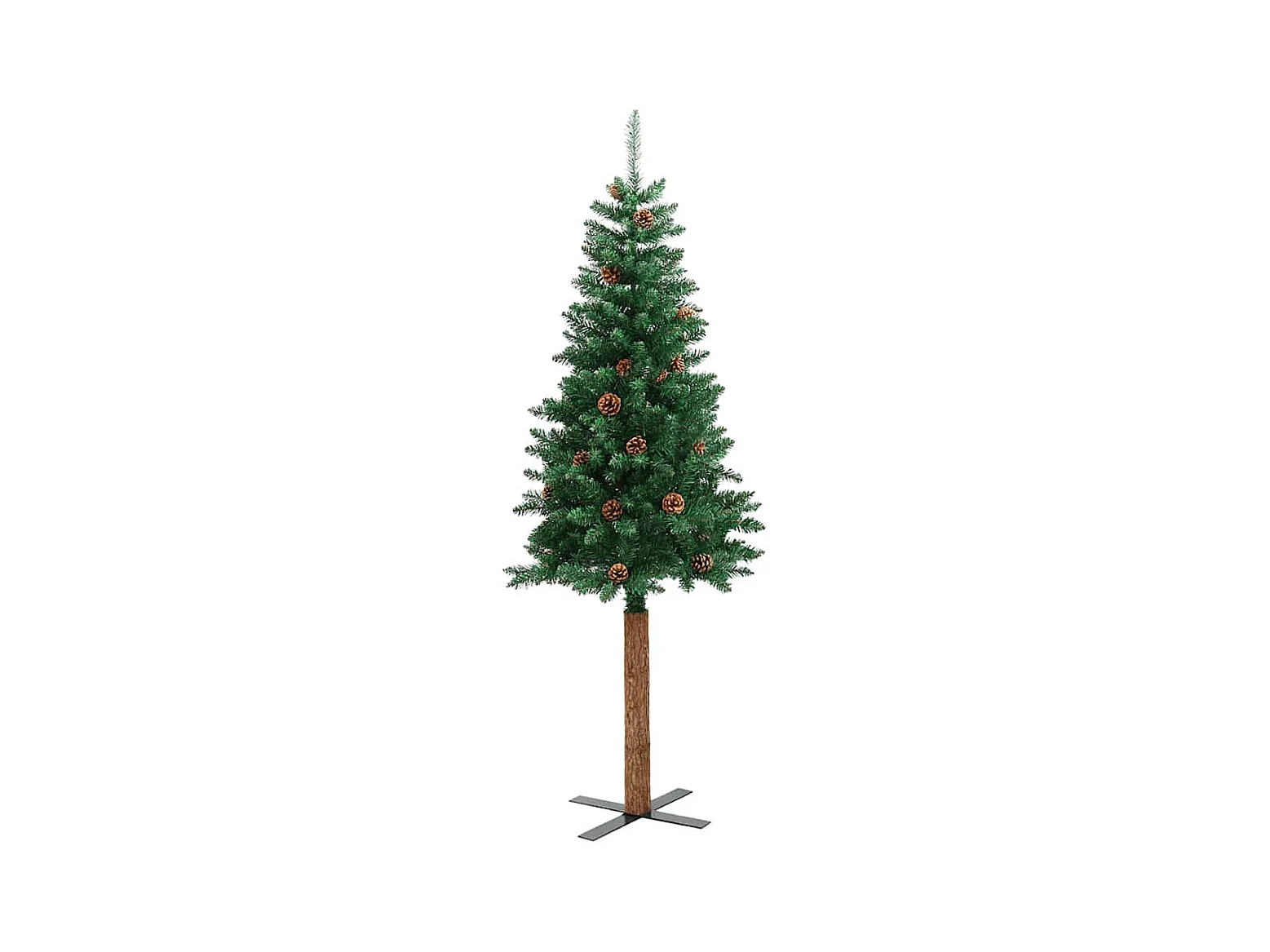 Árvore de Natal fina madeira e pinhas genuínas 180 cm PVC verde