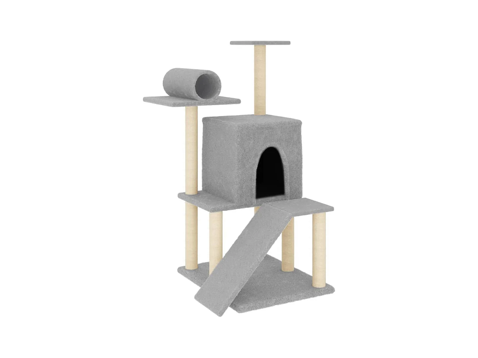 Árvore gatos c/ postes arranhadores sisal 110,5 cm cinza-claro