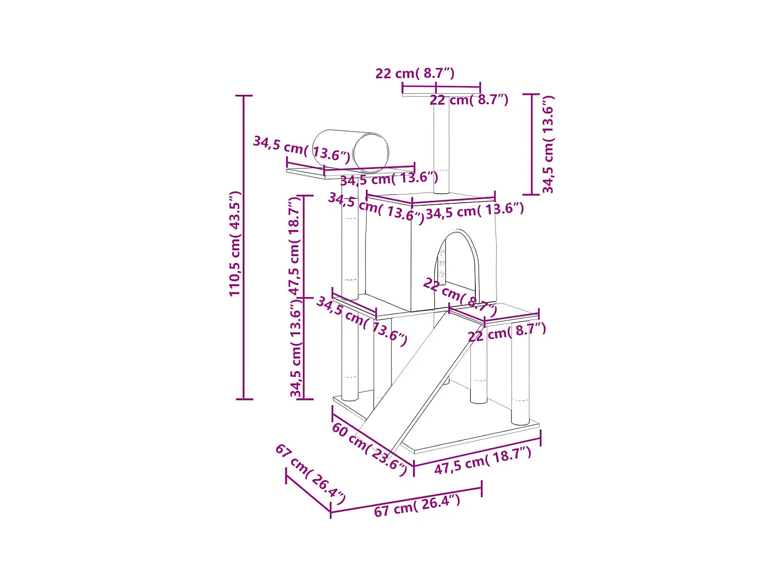 Árvore gatos com postes arranhadores sisal 110,5 cm cinza-escuro
