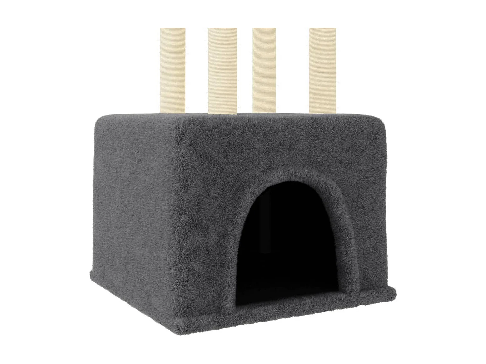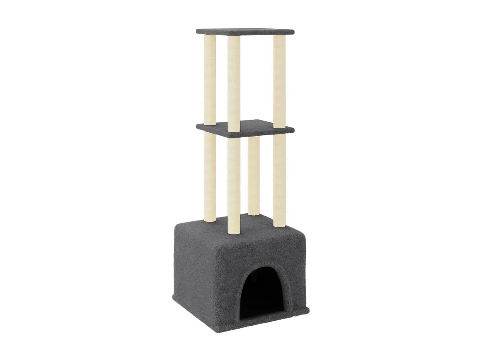 Árvore gatos c/ postes arranhadores sisal 133,5 cm cinza-escuro