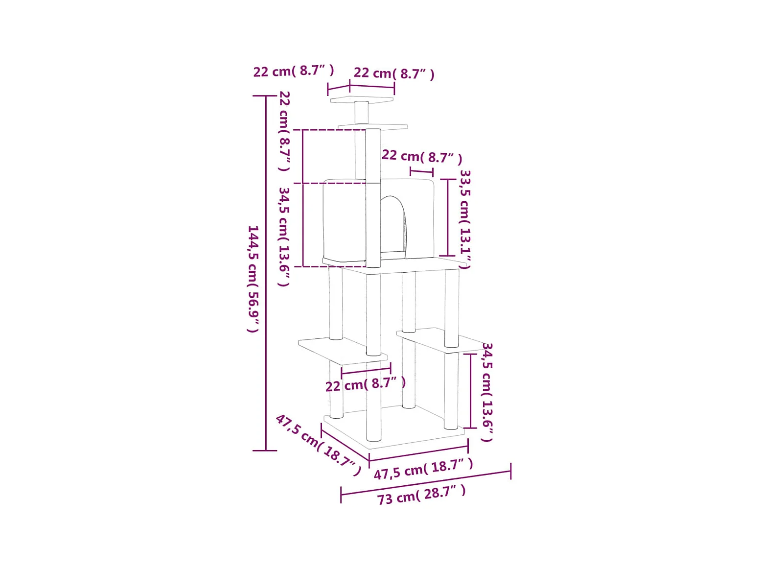 Árvore p/ gatos c/ arranhadores sisal 144,5 cm cinza-claro
