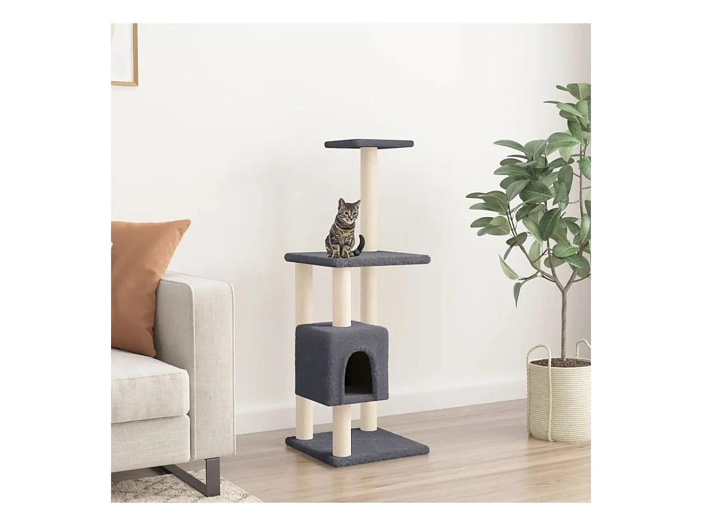 Árvore p/ gatos c/ postes arranhadores sisal 104cm cinza-escuro PT936675