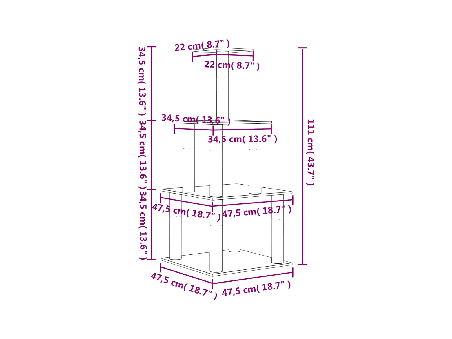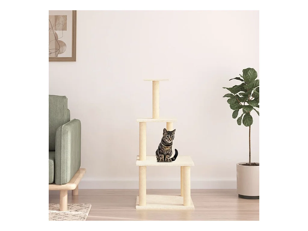 Árvore p/ gatos c/ postes arranhadores sisal 111 cm cor creme