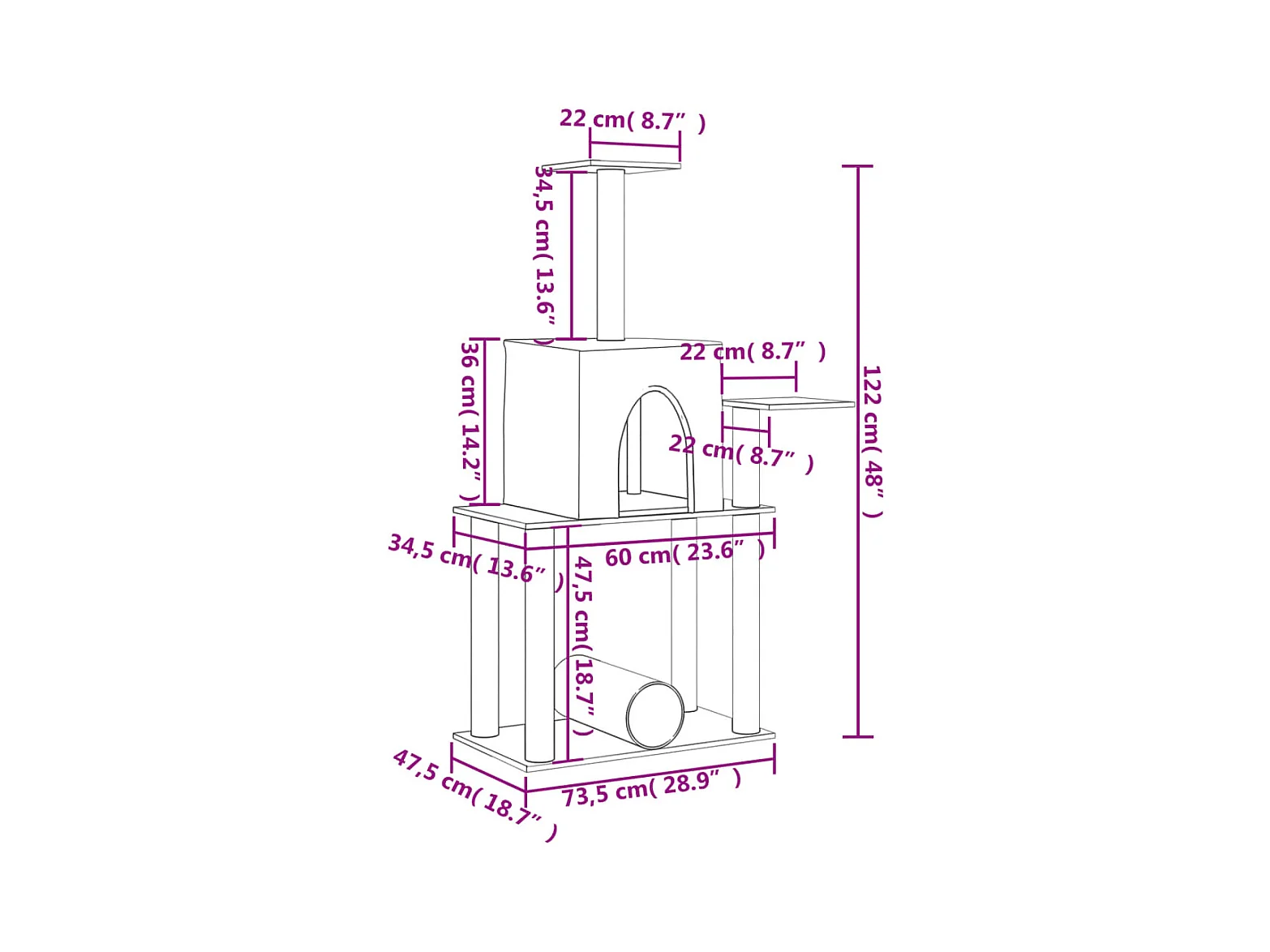 Árvore p/ gatos c/ postes arranhadores sisal 122 cm cinza-claro