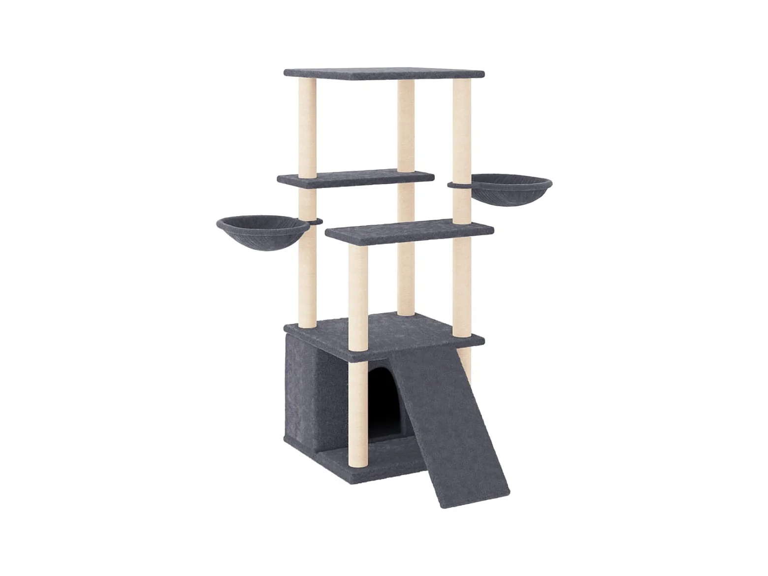 Árvore gatos c/ postes arranhadores sisal 133,5 cm cinza-escuro PT973590