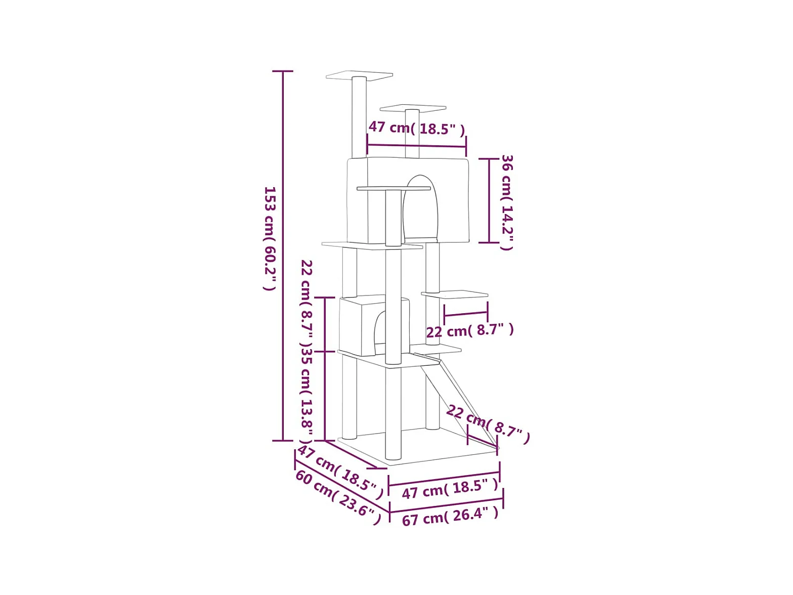 Árvore p/ gatos c/ postes arranhadores sisal 153 cm cinza-claro