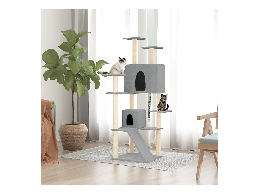 Árvore p/ gatos c/ postes arranhadores sisal 154 cm cinza-claro PT934674