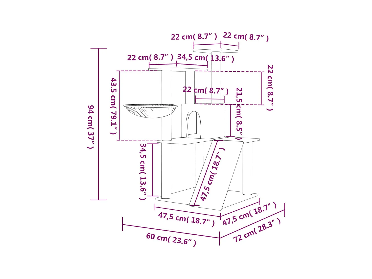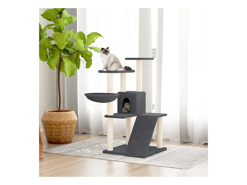 Árvore p/ gatos c/ postes arranhadores sisal 94 cm cinza-escuro
