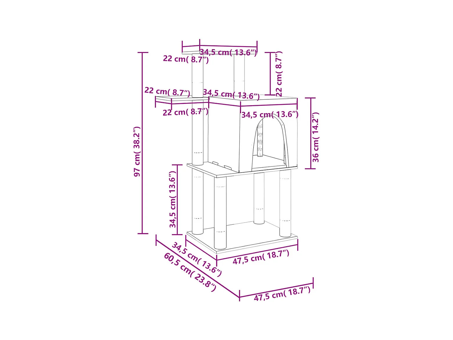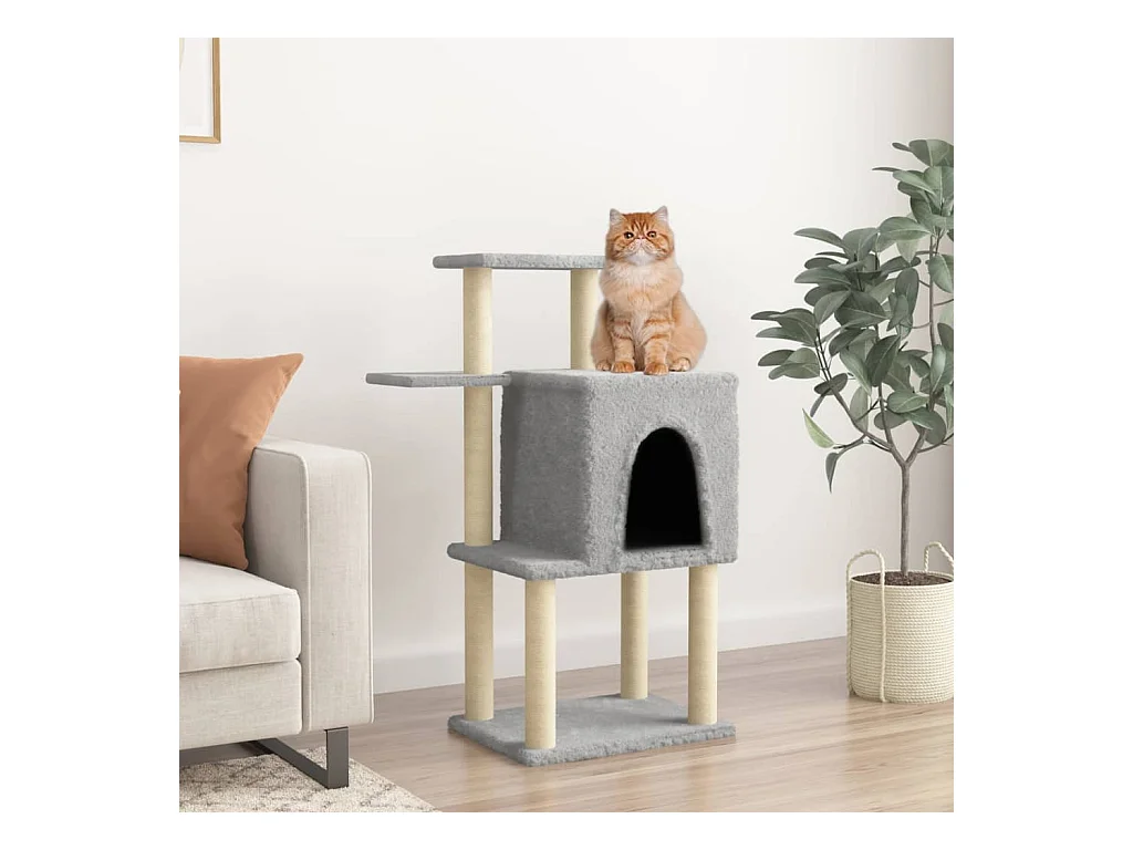 Árvore p/ gatos c/ postes arranhadores sisal 97 cm cinza-claro