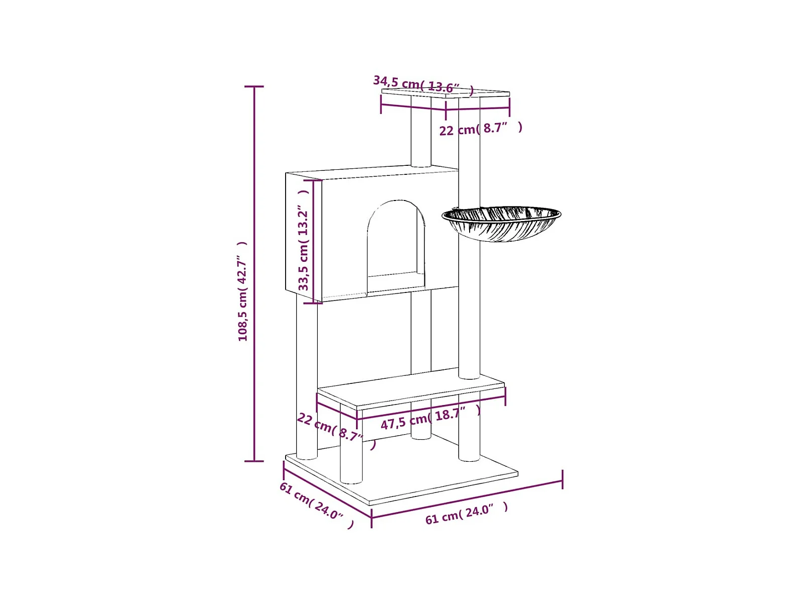 Árvore para gatos c/ arranhadores sisal 108,5 cm cinza-escuro PT632175