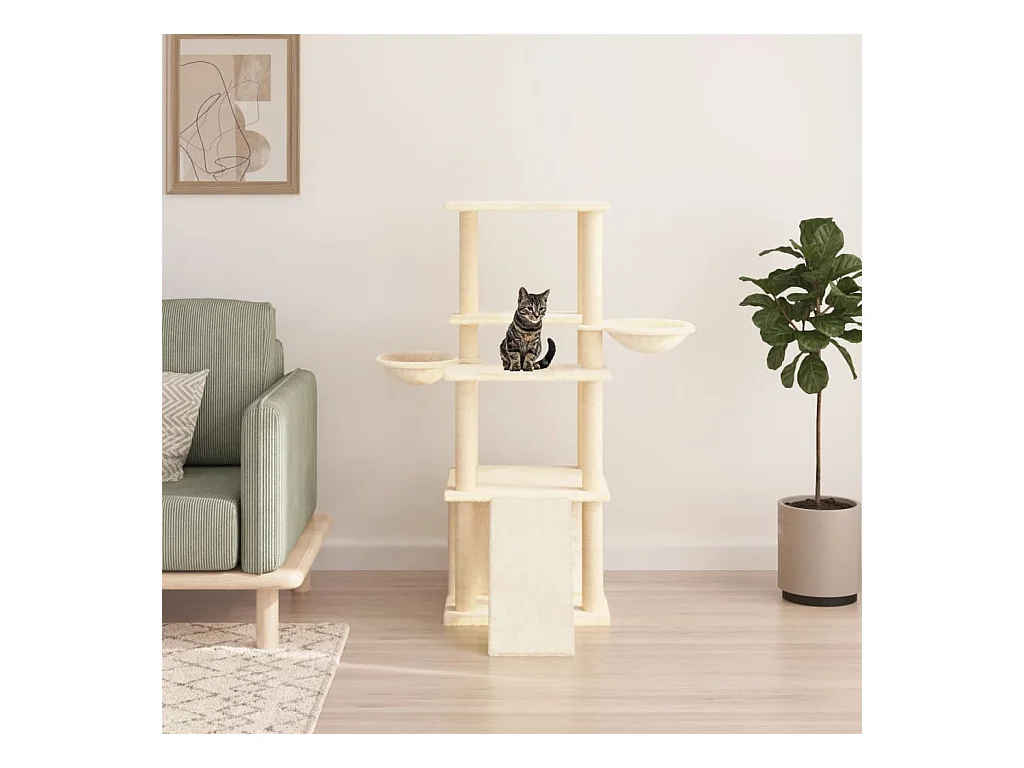 Árvore p/ gatos c/ postes arranhadores sisal 144,5 cm cor creme PT149271