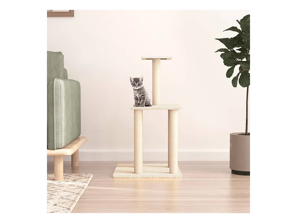 Árvore p/ gatos c/ postes arranhadores sisal 111 cm cor creme PT666773