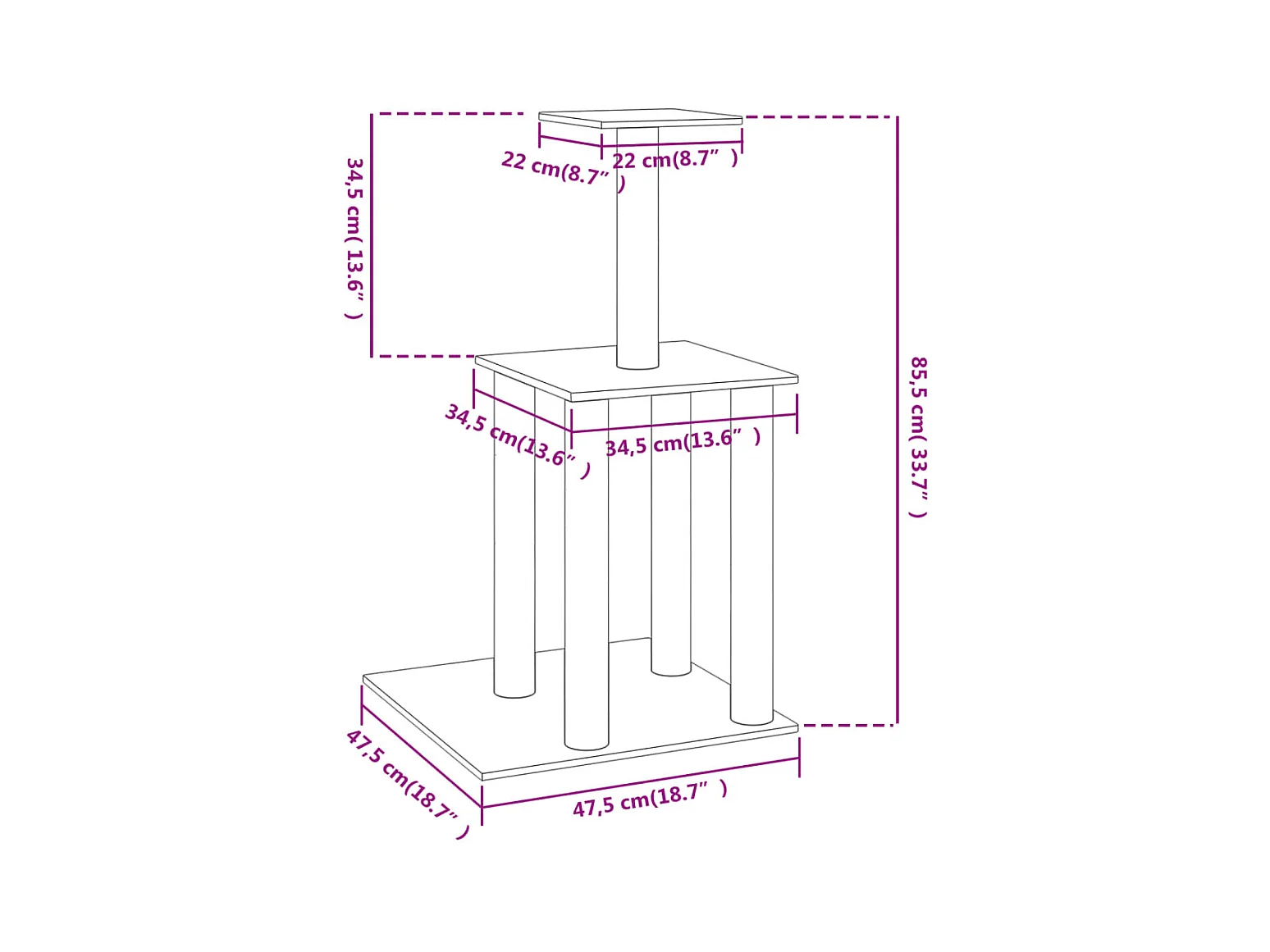 Árvore para gatos c/ postes arranhadores sisal 85,5 cm creme PT730911