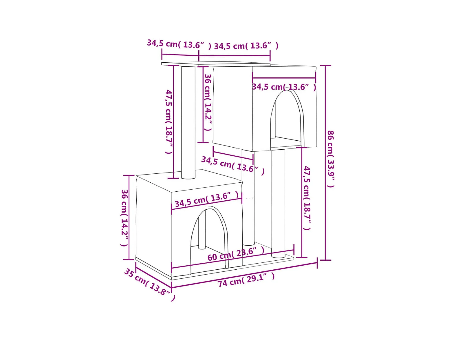 Árvore para gatos c/ postes arranhadores sisal 86 cm cor creme