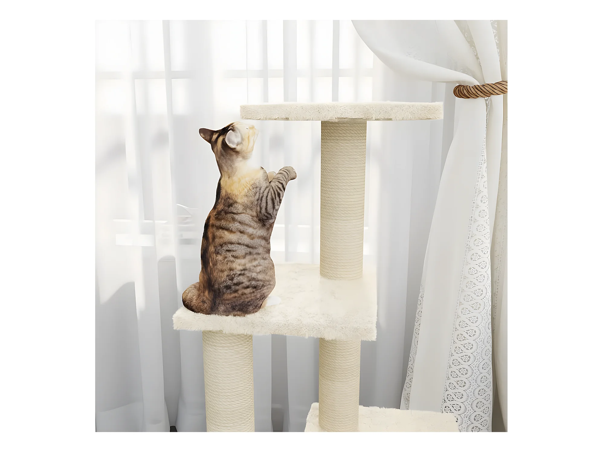 Árvore para gatos c/ postes arranhadores sisal 141 cm cor creme PT282226