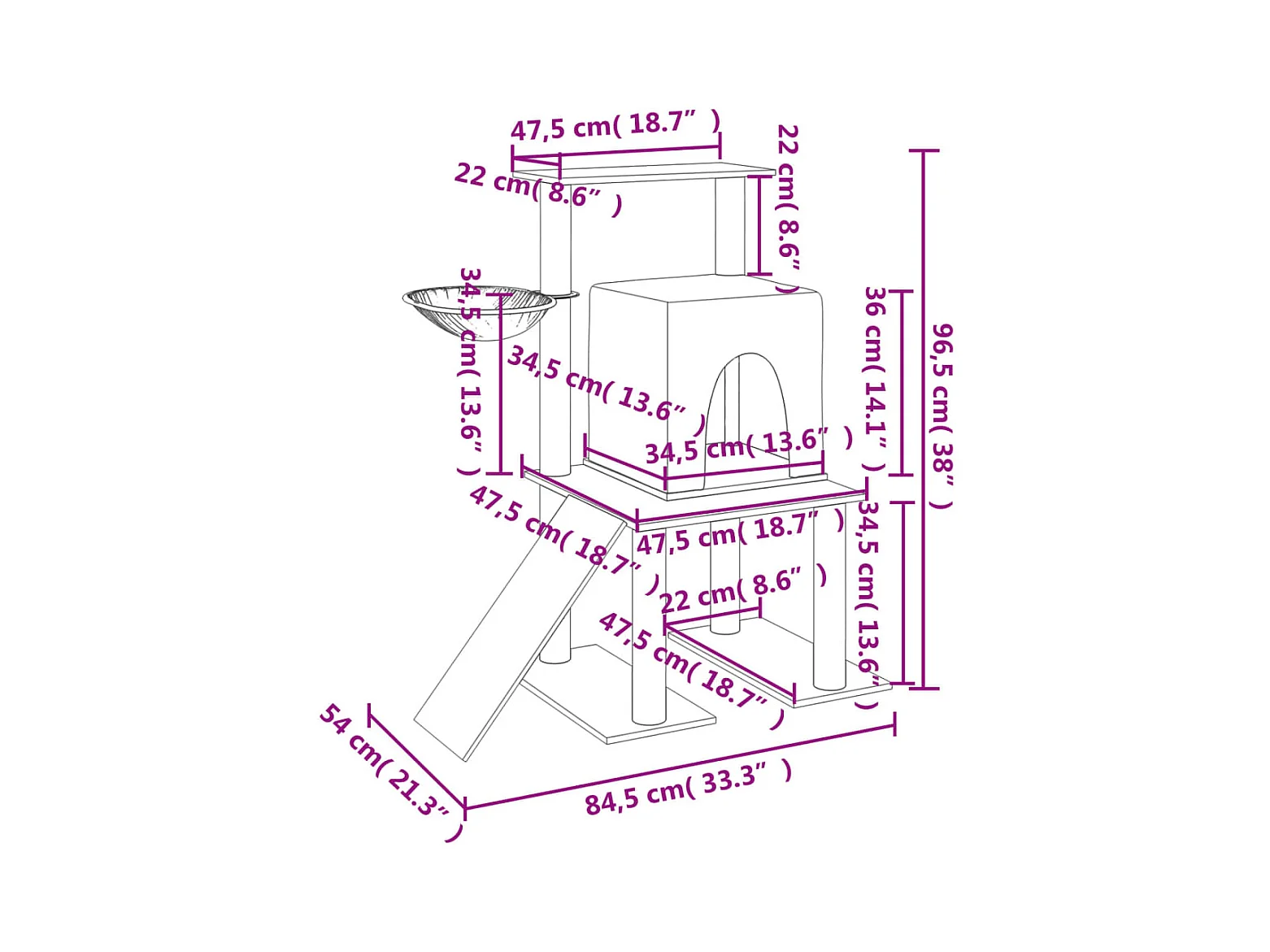 Árvore para gatos c/ postes arranhadores sisal 96,5 cm creme