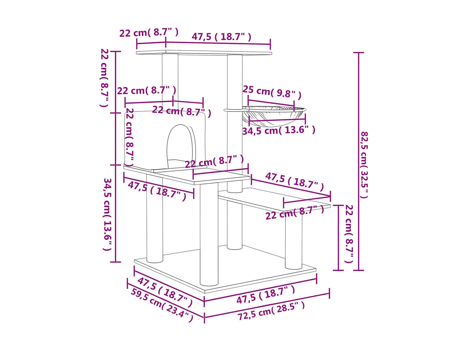 Árvore para gatos com postes arranhadores sisal 82,5 cm creme