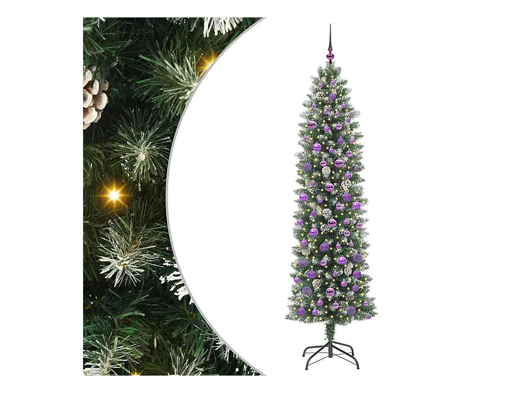 Árvore de Natal artificial fina com 300 luzes LED 210 cm