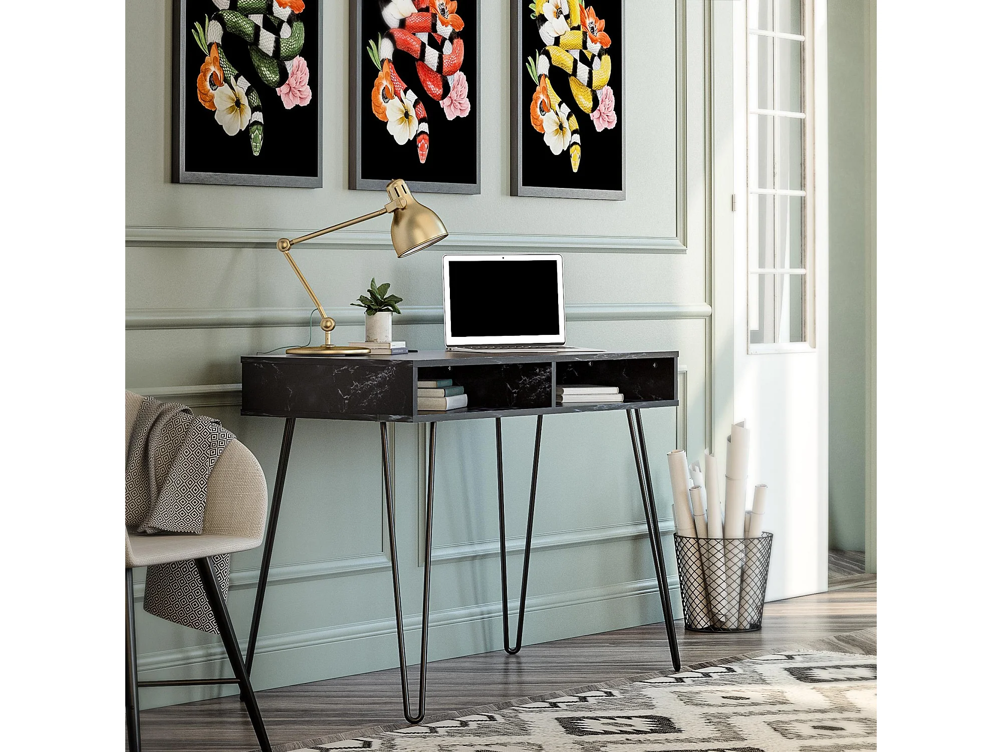Athena | Secretária de Computador com 2 compartimentos em Mármore Preto
