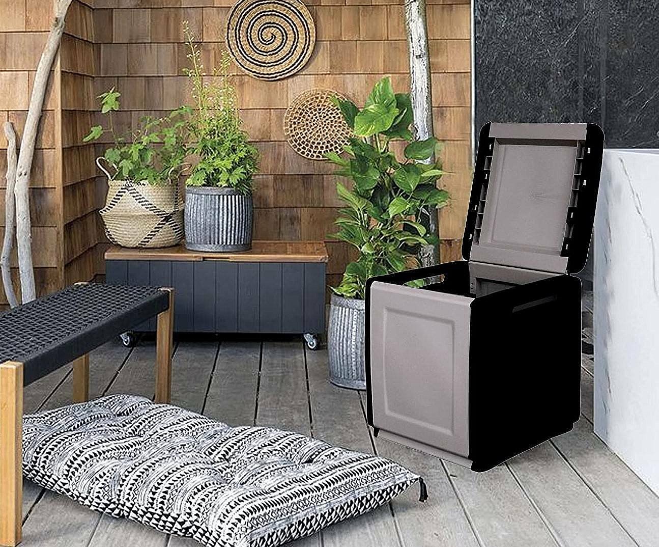 Baú Dbarbier, Baú multiuso, Baú de contentores,Caixa de armazenamento, 100% Made in Italy, 54x53h57 cm, Cinza claro e preto