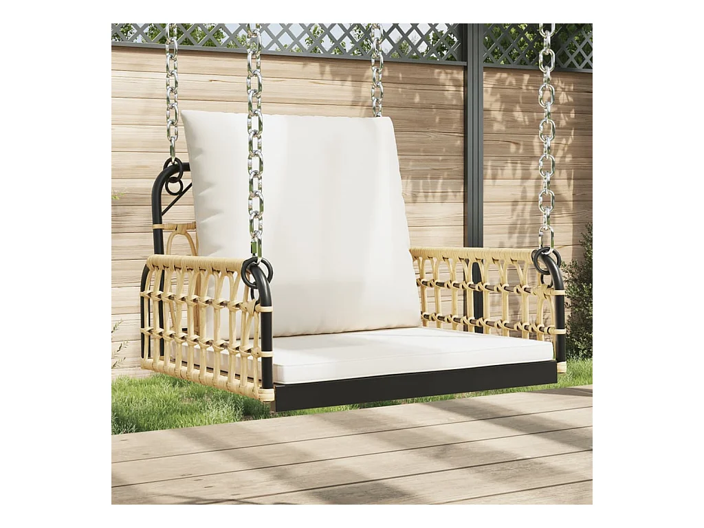 Balanço com almofadas marrons 119x56x48 cm resina tecida