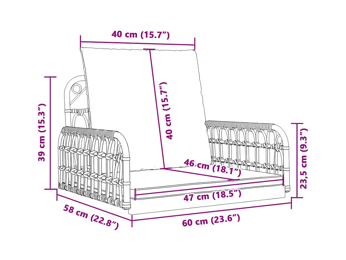 Balanço com almofadas 63x58x39 cm aço tecido resinado
