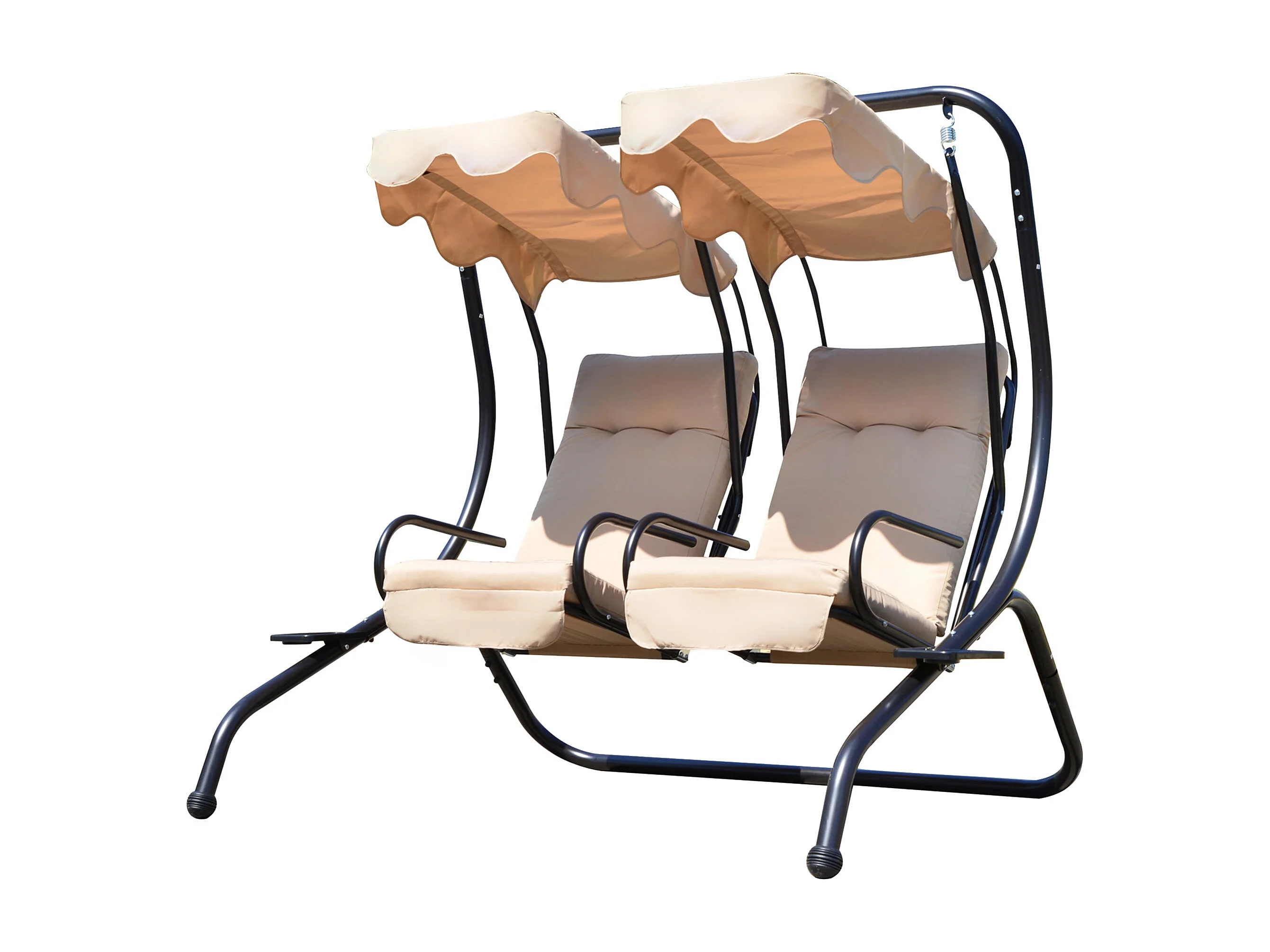 Baloiço de Jardim Outsunny para 2 Pessoas com Teto e Porta-copos em Bege - 170x136x170 cm
