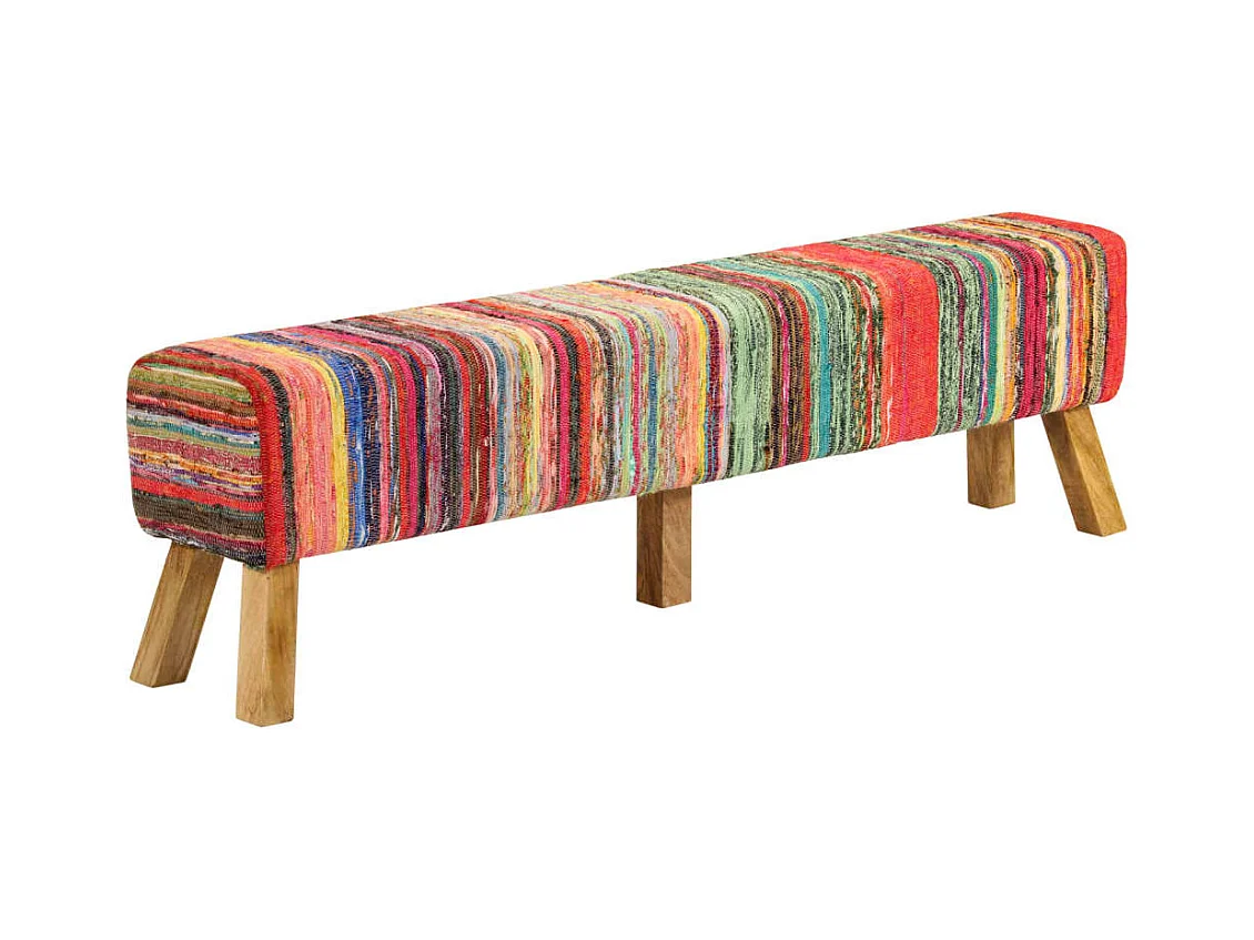 Banco 160 cm tecido chindi e madeira mangueira maciça multicor PT489866