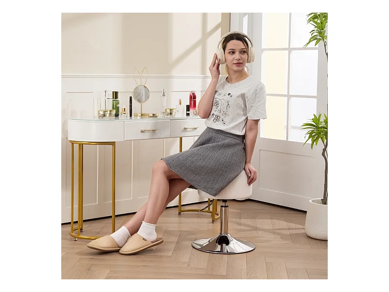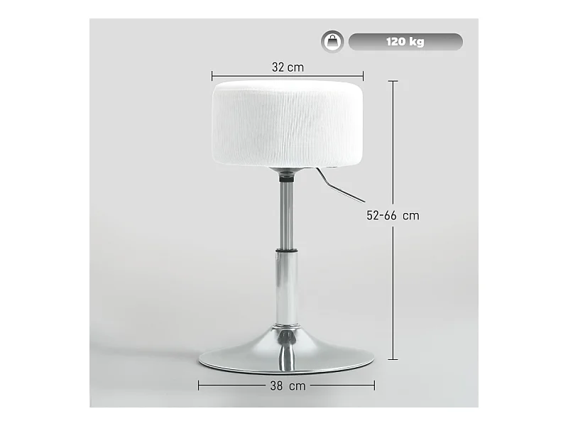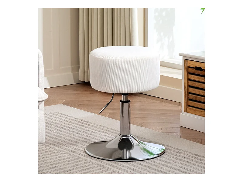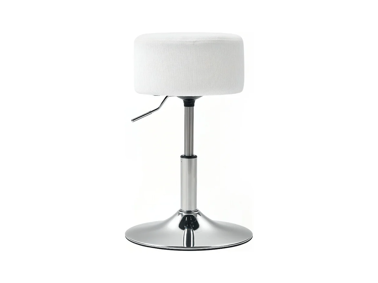 Banco alto ajustável em tecido de veludo cotelê branco com rotação de 360° e pernas de metal estáveis