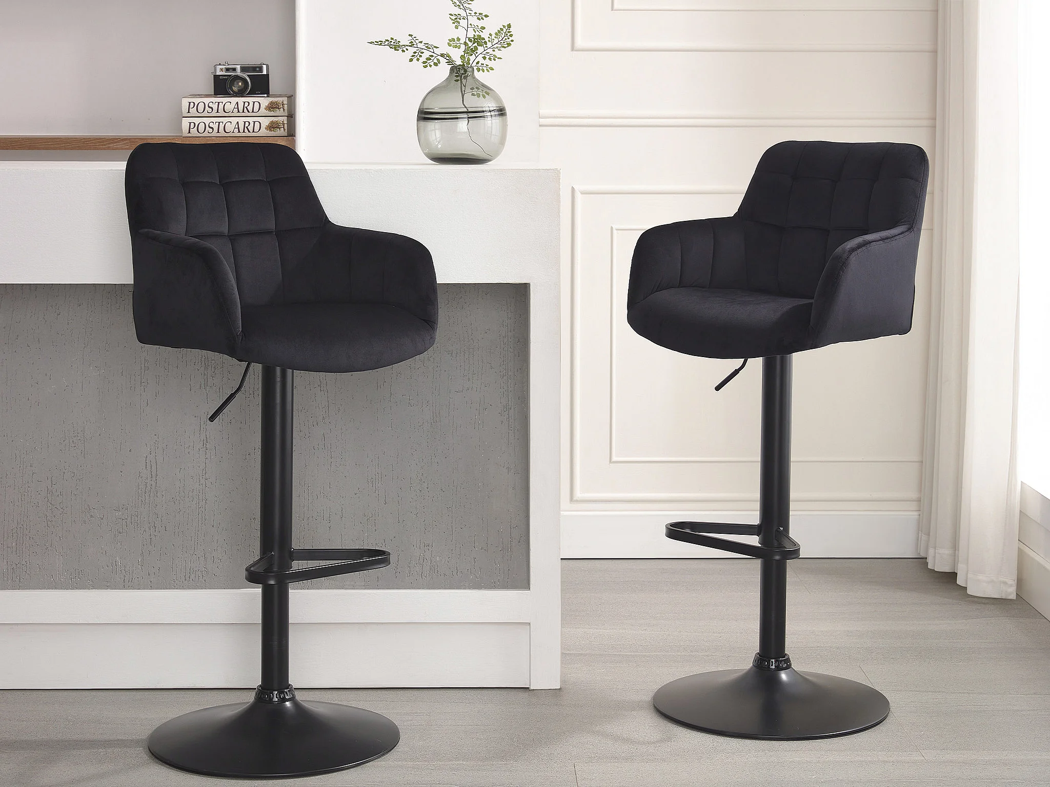 Banco alto veludo e metal, altura ajustável, cor preta - PEGA de Pascal MORABITO